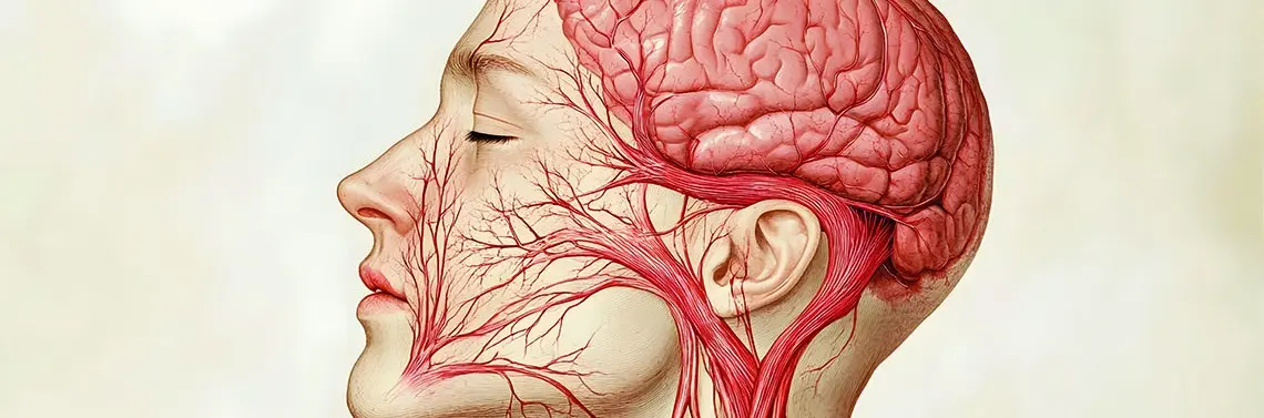 Nerw twarzowy (nervus facialis, VII nerw czaszkowy) jest strukturą o złożonej budowie funkcjonalnej, zawierającą włókna ruchowe unerwiające mięśnie mimiczne, włókna przywspółczulne zaopatrujące gruczoły łzowe i ślinowe oraz włókna czuciowo‑smakowe dla przednich dwóch trzecich języka [10][21]. Jego przebieg anatomiczny obejmuje odcinek wewnątrzczaszkowy, przejście przez kąt mostowo-móżdżkowy (cerebellopontine angle), kanał słuchowy wewnętrzny oraz odgałęzienia w obrębie twarzy [23]. Długi i kręty przebieg nerwu oraz bliskie sąsiedztwo struktur czaszkowych predysponują go do uszkodzeń w przebiegu procesów zapalnych, zakaźnych, urazów oraz zabiegów neurochirurgicznych obejmujących rejon kąta mostowo-móżdżkowego [21].
