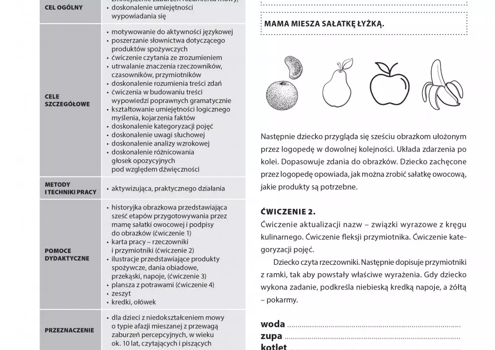 - Konspekt zajęć dla pacjentów z niedokształceniem mowy o typie afazji mieszanej z przewagą zaburzeń percepcyjnych,